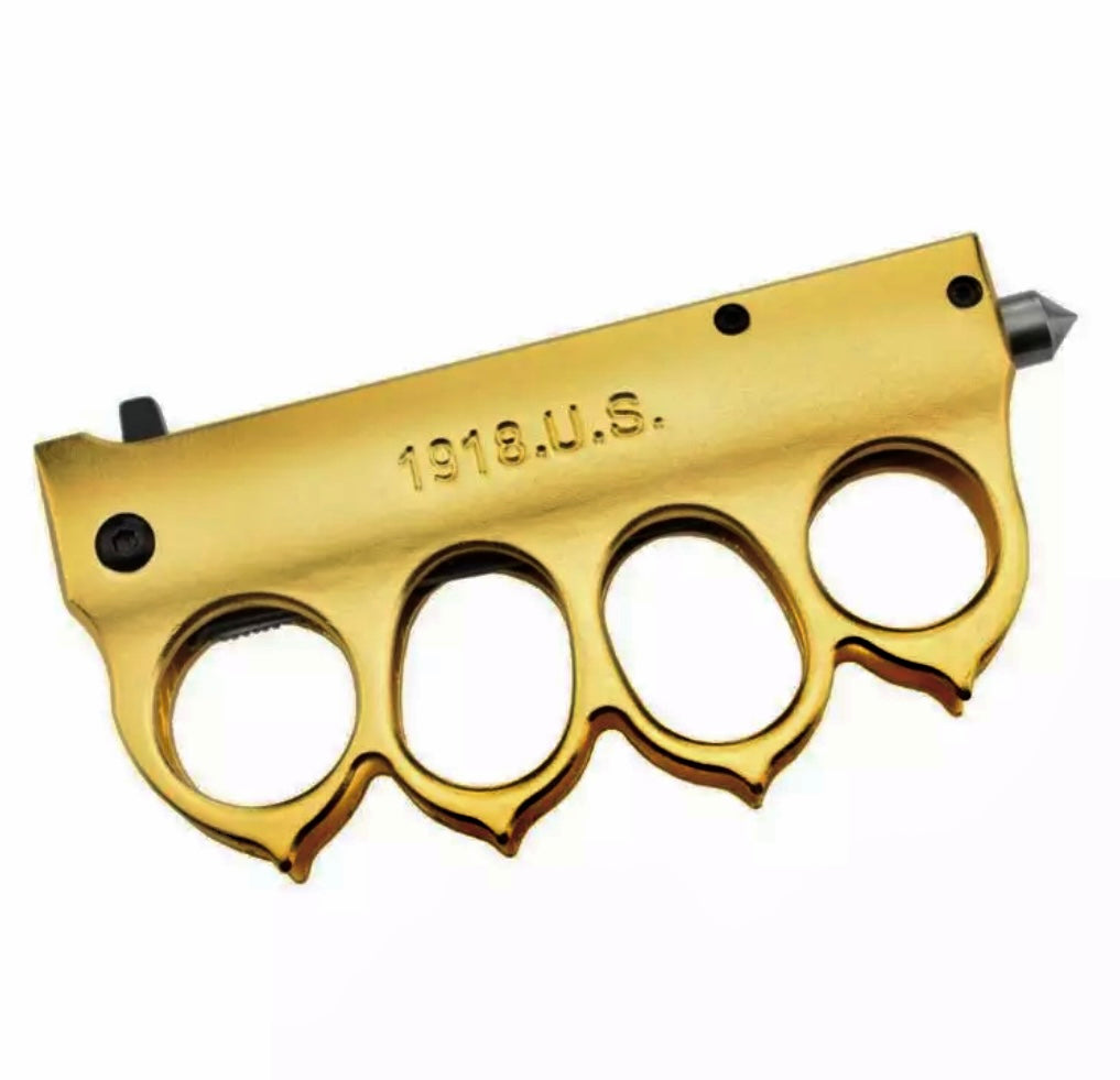 Ispirato al celebre modello adottato dall’esercito americano durante la Prima Guerra Mondiale, questo tirapugni con coltello integrato rievoca la brutalità e l’ingegnosità della guerra di trincea. Il design classico 1918 U.S., inciso sull’impugnatura dorata in metallo, rappresenta un omaggio fedele allo strumento originario impiegato sul fronte occidentale. Questo coltello è pensato sia per il collezionista esigente che per l’utente moderno alla ricerca di un dispositivo multifunzionale.